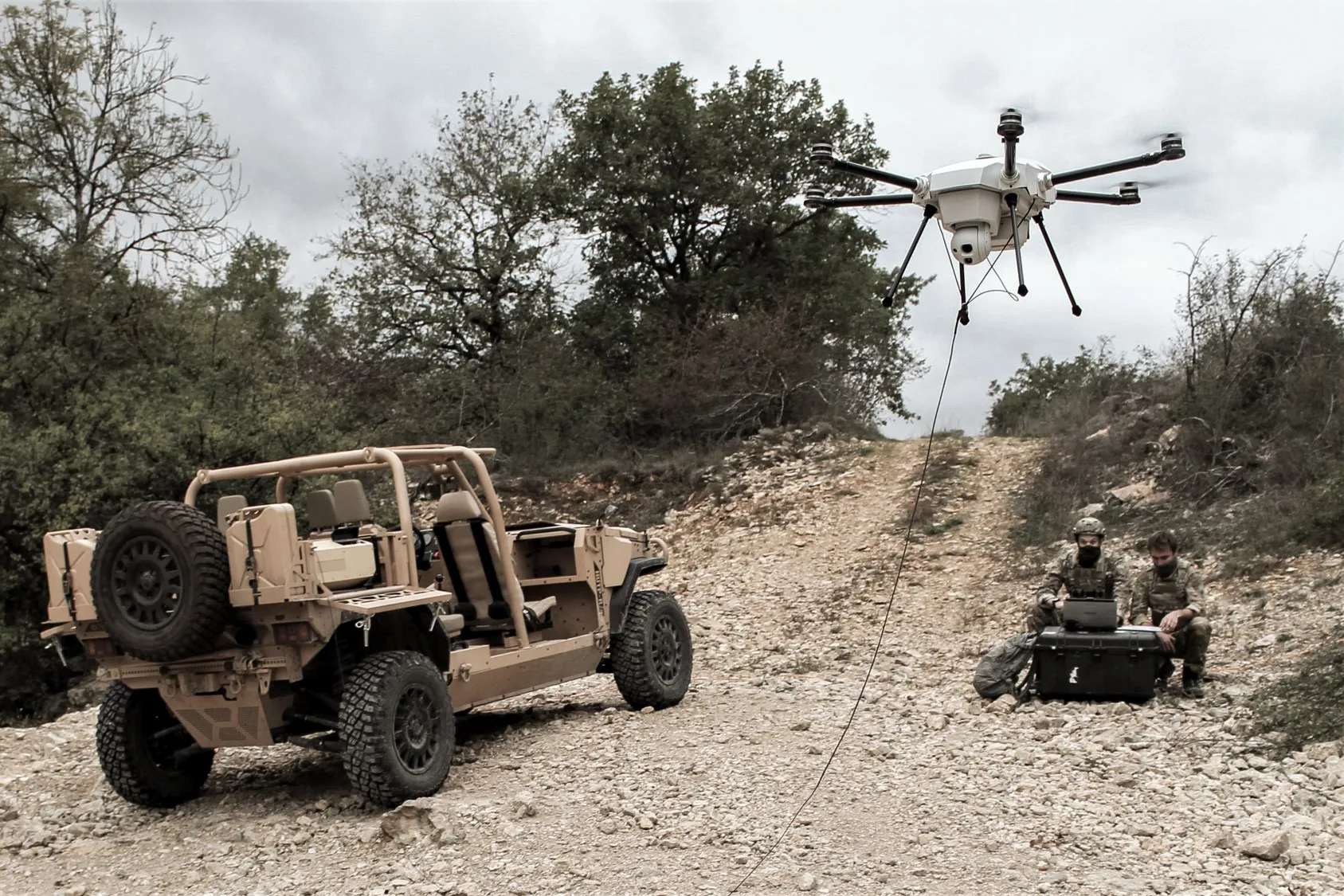 Prodotti di punta: THAS (Tethered Hovering Aerial System); Scout Drone-in-a-Box; configurazioni con cavo montate su veicoli