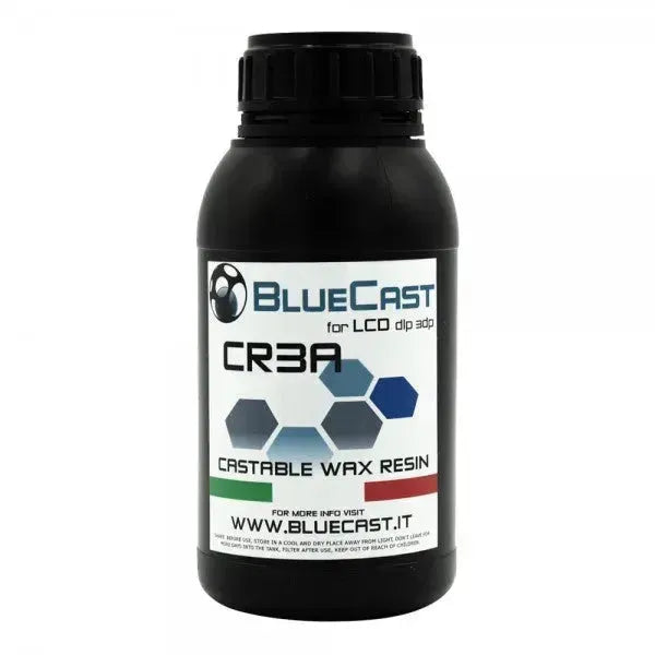 BlueCast Resin Cr3a è una delle resine colabili più facili da stampare e garantisce una colata eccellente. A differenza di altre resine monomeriche che richiedono trattamenti complessi e difficili, BC Cr3a richiede solo di essere lavata dopo la stampa e polimerizzata. Non è richiesto alcun lavaggio con acqua calda, nessuna bollitura e nessuna polimerizzazione notturna.