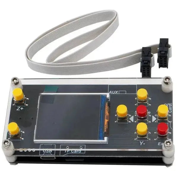 Scheda dotata di un proprio microcontrollore, un piccolo display LCD ed alcuni pulsanti. Abbinata al controller GRBLCONTROLLER (vedi prodotti correlati), permette di lavorare con una piccola CNC senza dover necessariamente disporre di un PC, essendo necessario solo il file generato dal software CAM e caricato su una micro SD card. |