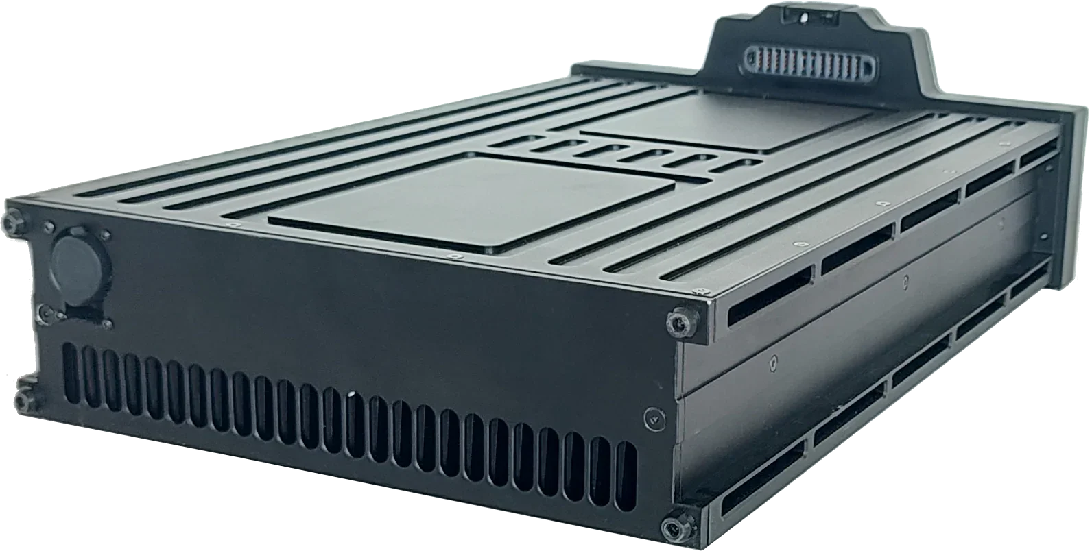 L'Air Module TPS110M-Flycart30 opera con un ingresso di tensione variabile da 580 a 810Vdc e fornisce un'uscita costante a 59Vdc con una potenza nominale di 18.000W, raggiungendo picchi di oltre 22.000W per 10 secondi. Il suo design plug-and-play consente una sostituzione semplice e rapida della batteria del drone senza necessità di modifiche strutturali. Il sistema di dissipazione integrato con ventilatore attivo e condotti per raffreddamento forzato ne assicura un funzionamento ottimale anche nei contesti più esigenti.