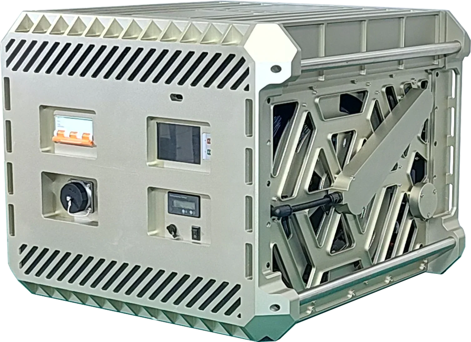 Il modulo a terra garantisce un'alimentazione trifase regolabile fino a 800Vdc e una potenza costante di 22.000W, con picchi fino a 25.000W. La bobina automatica regola tensione e velocità del cavo in sincronia con il decollo e l’atterraggio, supportata da una batteria di backup per garantire sicurezza anche in caso di interruzioni di alimentazione. Questo sistema robusto è equipaggiato con funzioni di protezione multipla per la massima sicurezza operativa e un'ampia gamma di interfacce per un semplice controllo remoto e monitoraggio.