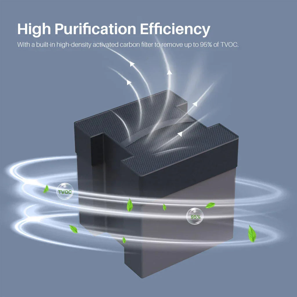 Mars Mate è dotato di un sensore VOC integrato che monitora la concentrazione di VOC e avvisa quando è necessario sostituire il filtro. Quando il sensore rileva che la durata del filtro ha raggiunto ≥ 1440 ore o che la concentrazione di VOC è ≥ 1,4 ppm, la spia della qualità dell'aria AQI diventa rossa, segnalando la necessità di sostituire il filtro.