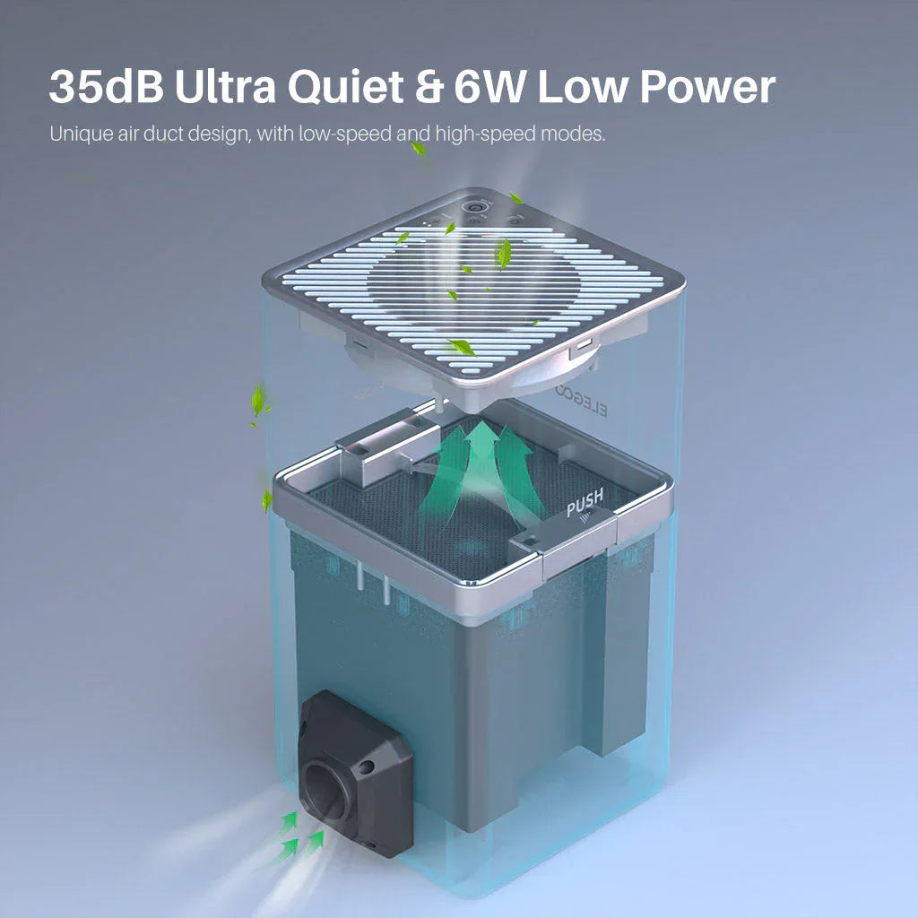 Il purificatore d'aria Elegoo Mars Mate è progettato per migliorare la tua esperienza di stampa 3D mantenendo un ambiente pulito e fresco. Dotato di filtro a carboni attivi, funzionamento ultra silenzioso e funzioni intelligenti come i promemoria di reset del filtro, garantisce che il tuo spazio di stampa rimanga privo di odori di resina e COV.