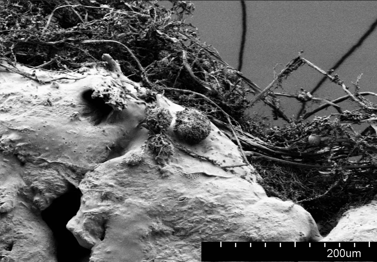 - Le spore trovano spazio per germinare in piccole cavità. (vedi foto SEM)