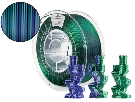 Spectrum Magic SILK PLA è un filamento per stampa 3D innovativo che trasforma i tuoi progetti in vere e proprie opere d'arte grazie al suo incredibile effetto cangiante. Utilizzando l'avanzata tecnologia di coestrusione, Magic SILK PLA combina due colori in un unico filamento, creando transizioni cromatiche mozzafiato ed effetti di luce dinamici. Ogni stampa realizzata con questo filamento brilla di colori a seconda dell'angolazione e dell'illuminazione, conferendo ai tuoi modelli profondità e un carattere unico.