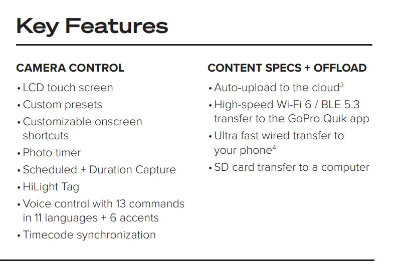 Progettata per creativi e avventurieri, la MAX2 integra stabilizzazione video HyperSmooth all'avanguardia, audio immersivo a 360° con 6 microfoni e modalità selfie avanzate. La videocamera è dotata di una intuitiva interfaccia touchscreen LCD, controllo vocale multilingue, e si collega facilmente tramite Wi-Fi 6 o Bluetooth BLE 5.3 per trasferimenti veloci e backup automatico su cloud. Anche in condizioni climatiche rigide, la batteria Enduro garantisce prestazioni eccellenti.