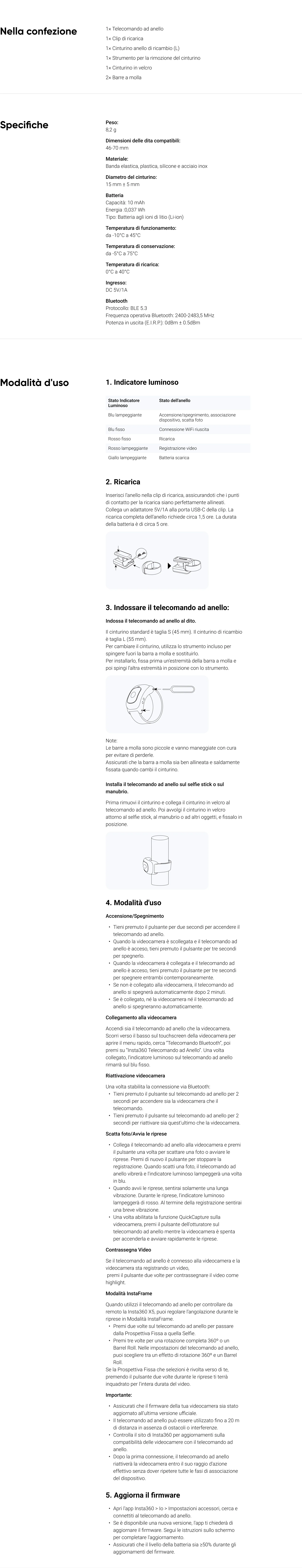 1. Al momento, il telecomando ad anello è compatibile solo con Insta360 GO Ultra, Insta360 X5 e Insta360 Ace Pro 2. Controlla il sito di Insta360 per futuri aggiornamenti sulla compatibilità.