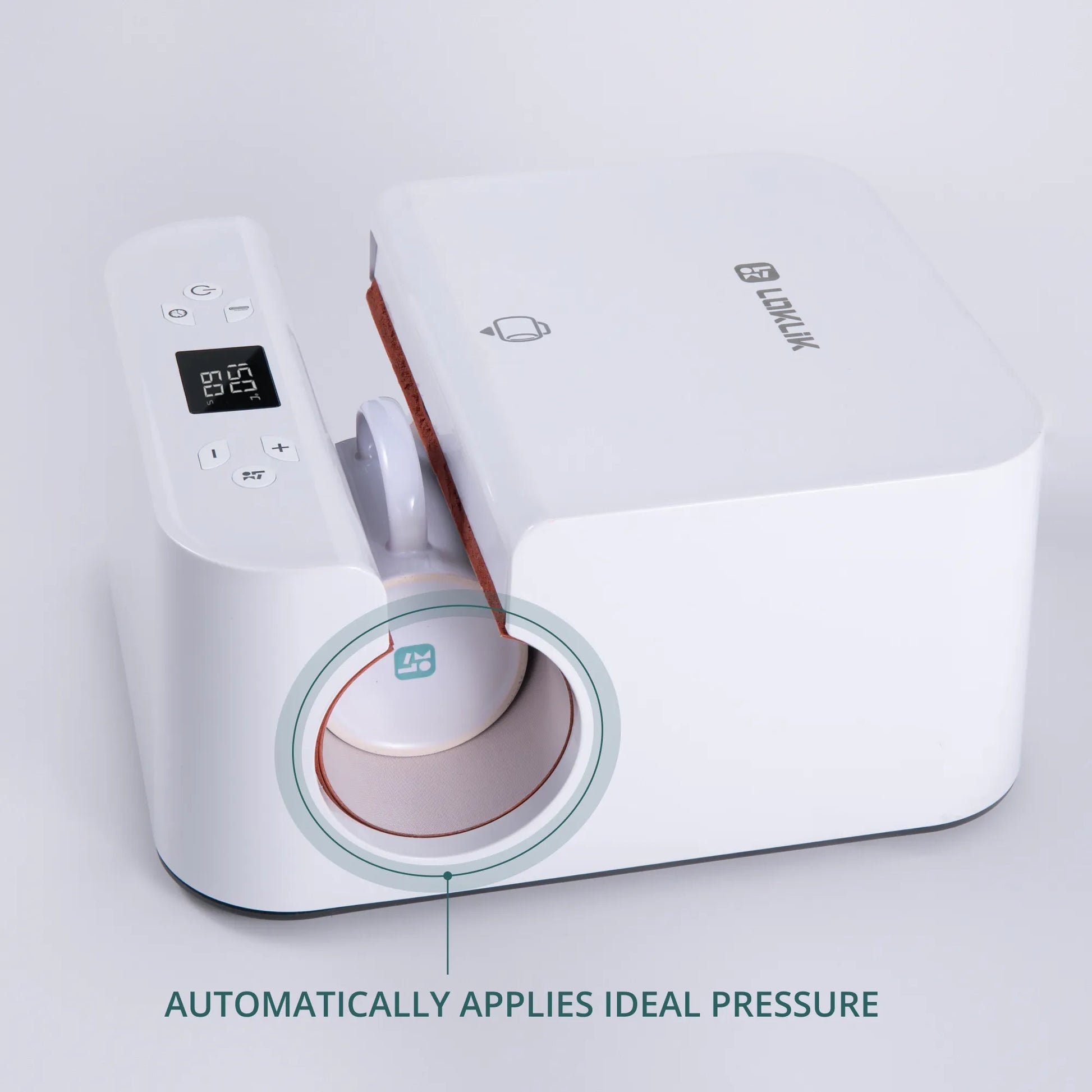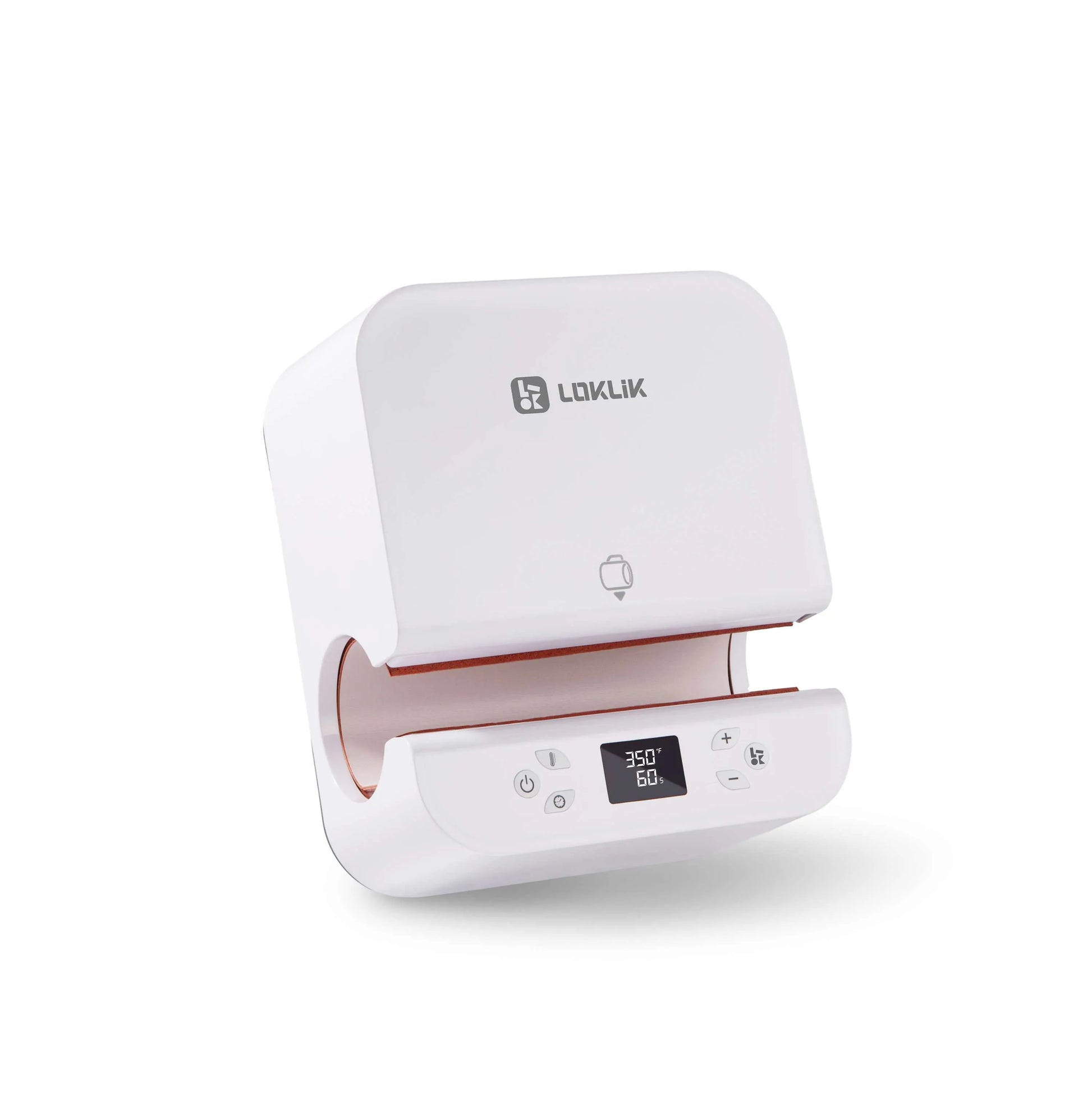 Decora bicchieri, tazze e tazzine con la nostra pressa a caldo LOKLiK Auto Tumbler. Con un solo clic, questa pressa a caldo automatica trasferirà il tuo design su oggetti cilindrici con facilità.