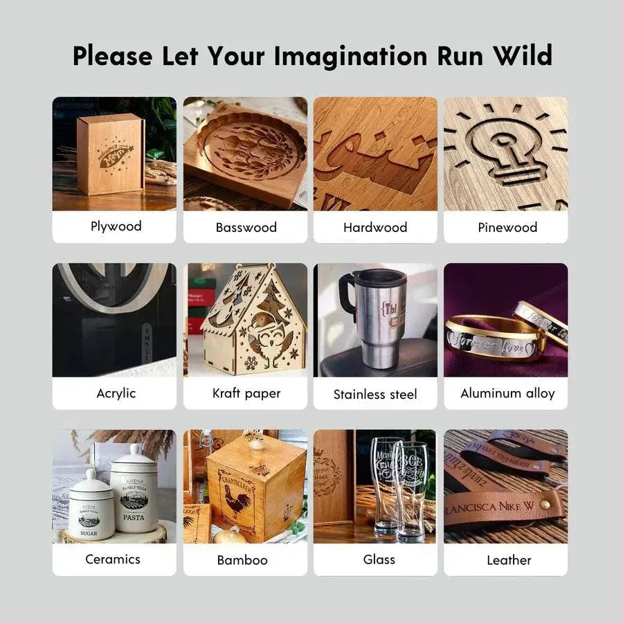 Una macchina è multiuso. Se vuoi incidere con energia più elevata, puoi sostituire direttamente la testina laser da 5 W (non inclusa), e poi si trasformerà immediatamente in una macchina per incisione da 10 W.