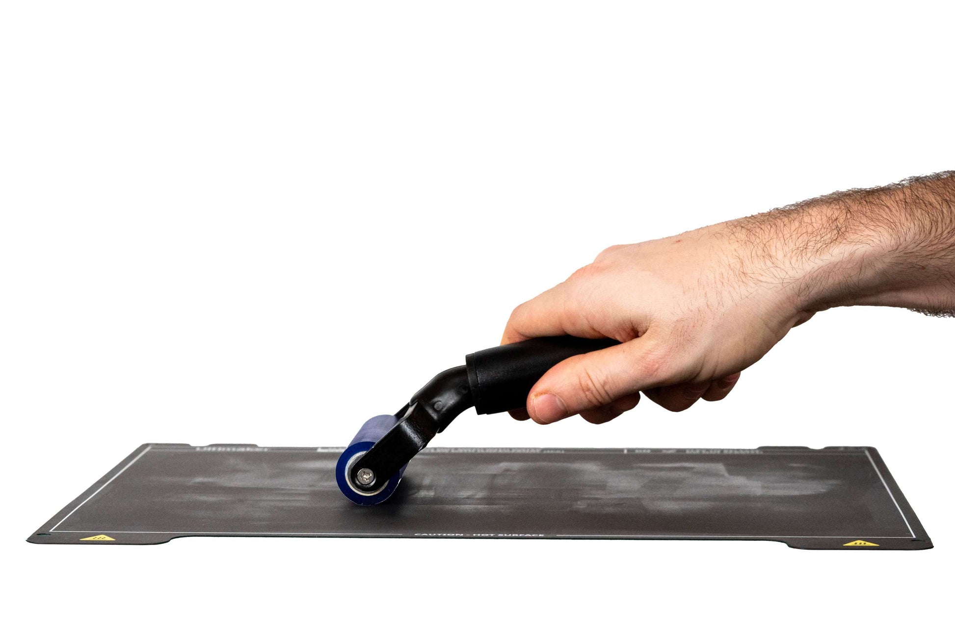 L'innovativo Glide Roller distribuisce l'adesivo in modo uniforme e controllato su tutta la piastra di stampa in pochi secondi, sostituendo metodi manuali poco uniformi come penne, stick o pennelli. È progettato per offrire velocità, affidabilità e una copertura uniforme, eliminando l'applicazione eccessiva o insufficiente di adesivo che causa problemi di adesione.