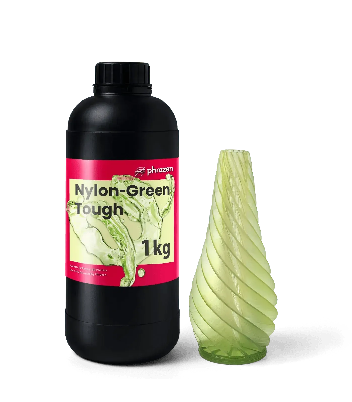 Phrozen Resin Nylon-Green Tough è un materiale con grande resistenza agli urti, progettato per la stampa di parti ingegneristiche funzionali